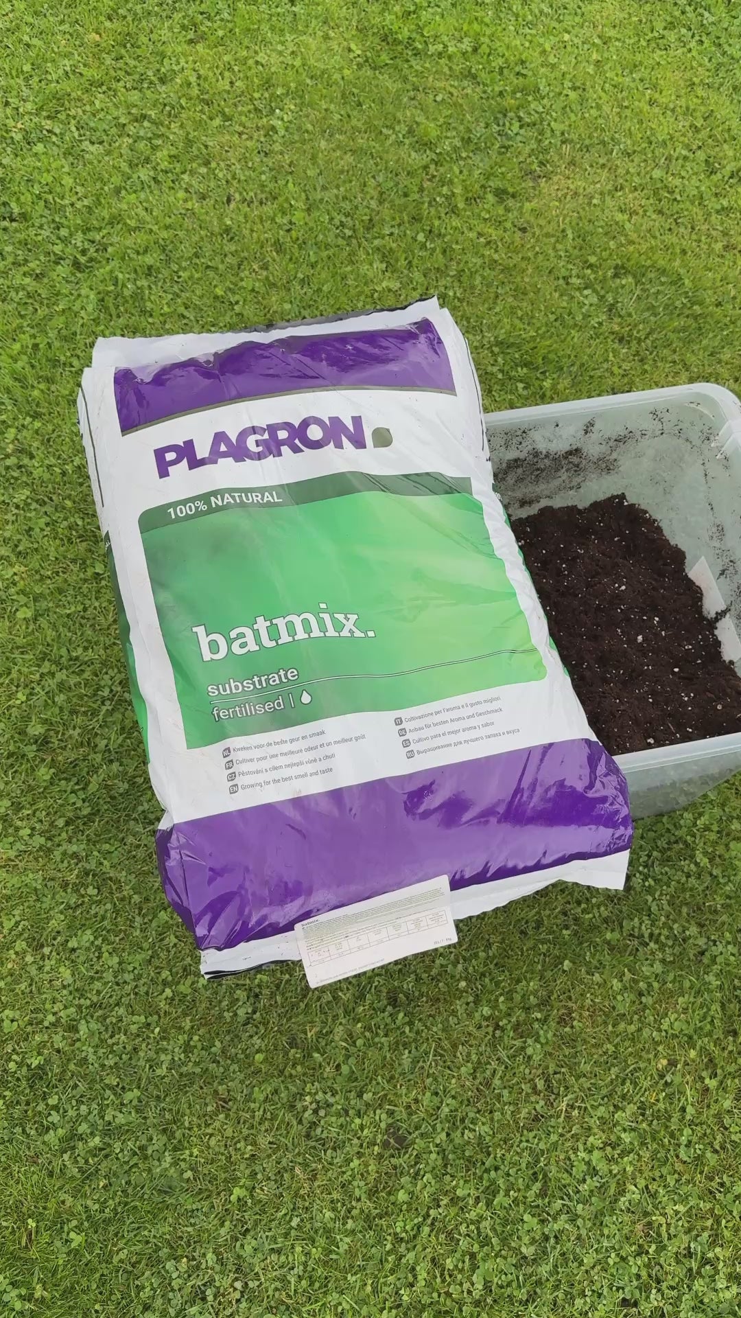 ¾ Batmix sobib orgaaniliseks kasvatamiseks. Täida pott, istuta taim ja alusta väetamist seitsmendal nädalal. Jälgi taime seisundit, et vajadusel väetamist kohandada.